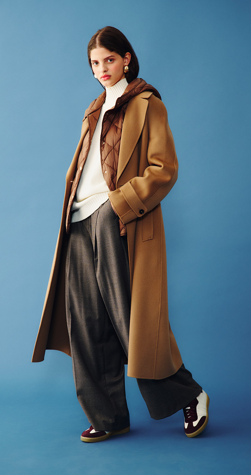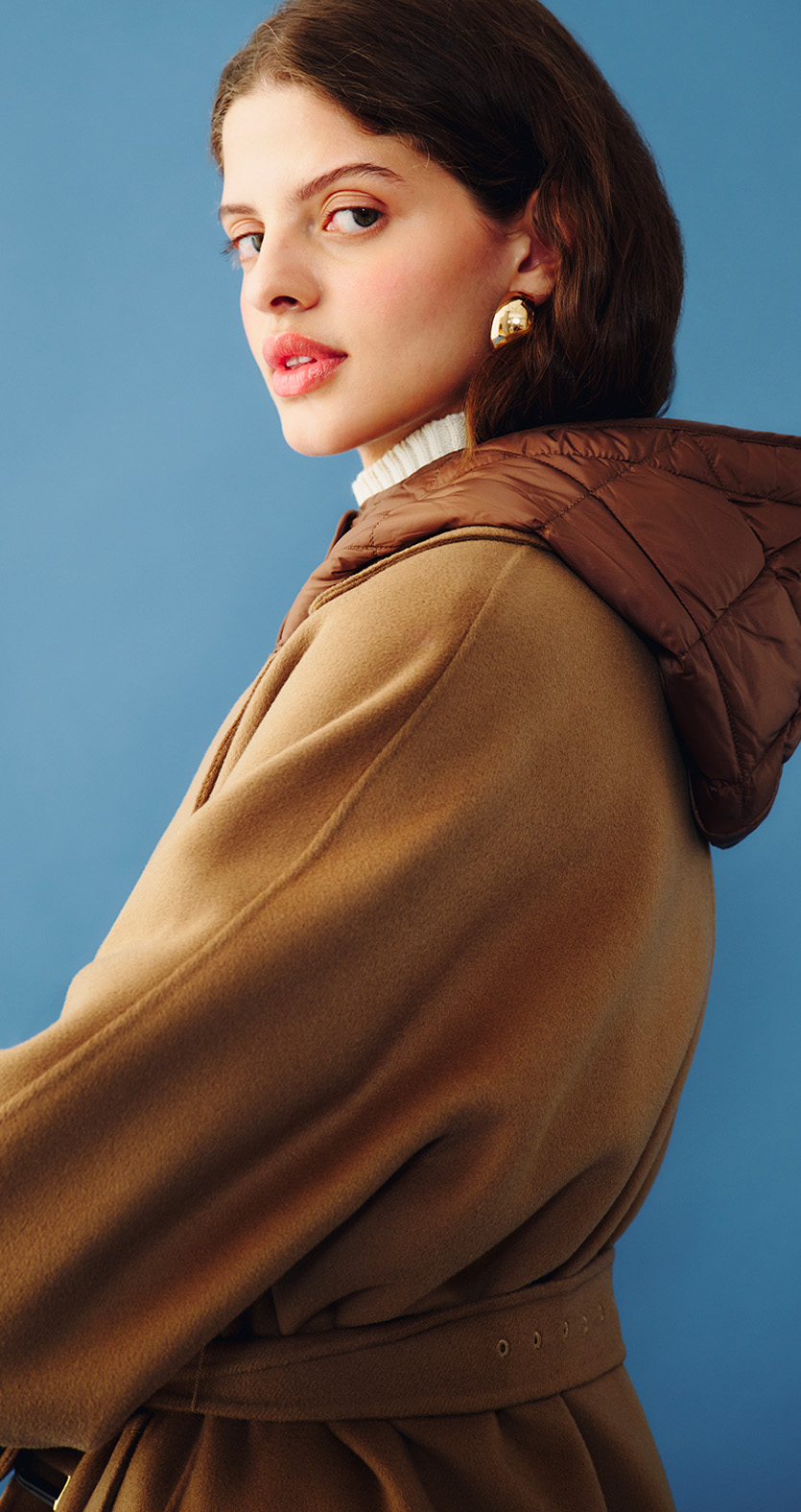 Long padded coat with belt