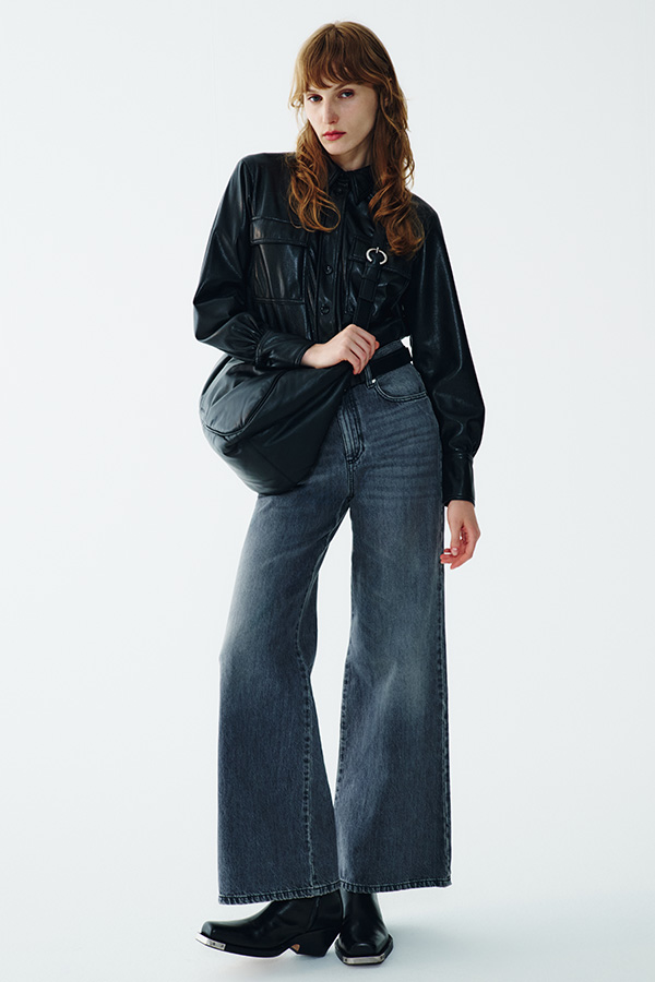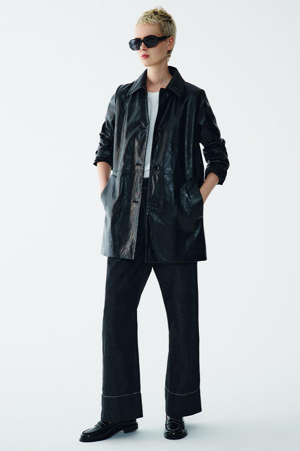 Leather meets denim with the same energy and vibes as the 1990s. Oversized jackets, wide-leg jeans and simple silhouettes that evoke the minimalism of that era.