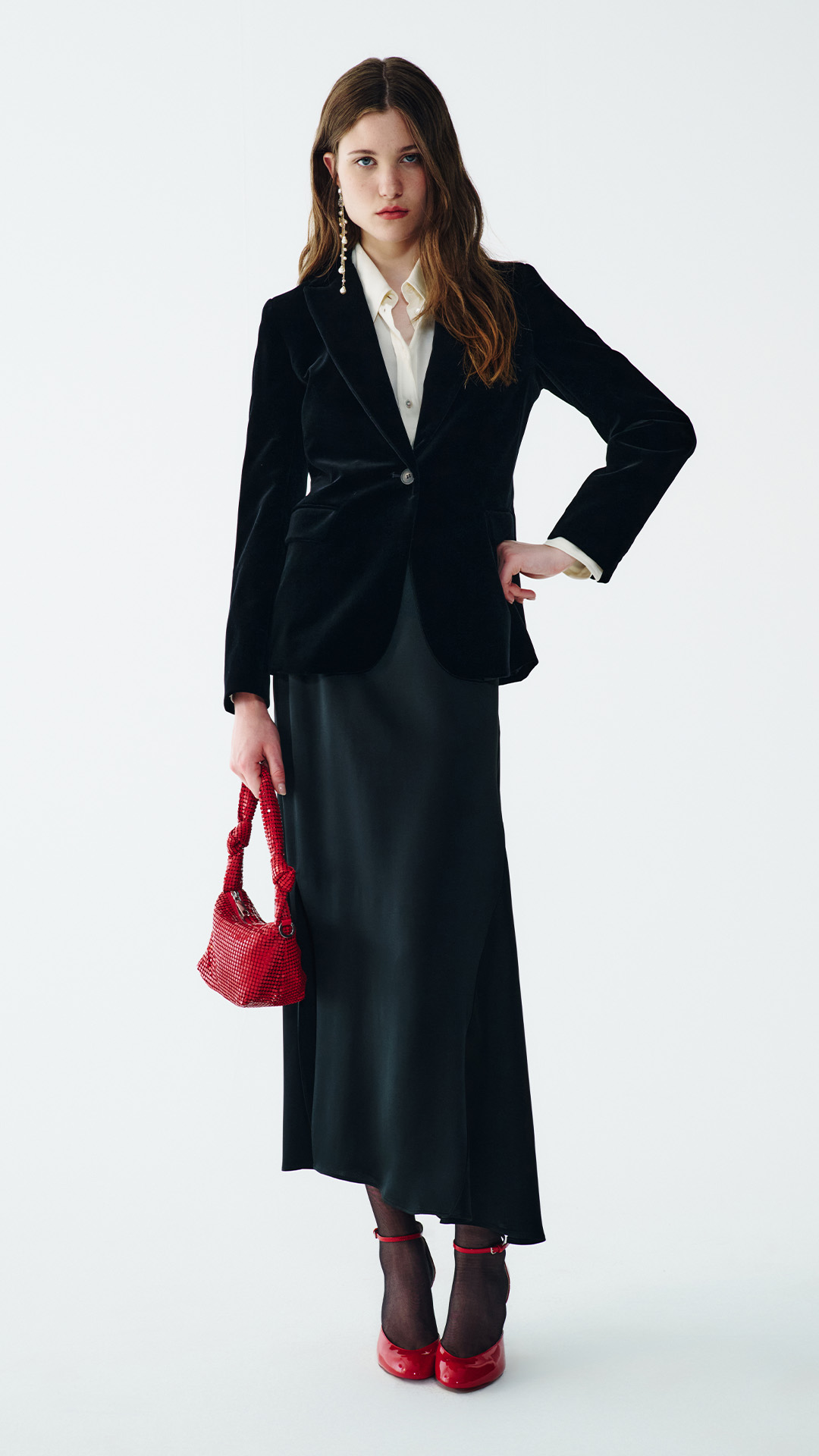 Black, velvet and sparkling details: the perfect mix for winter festivities.