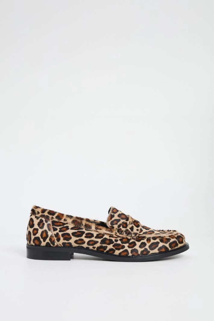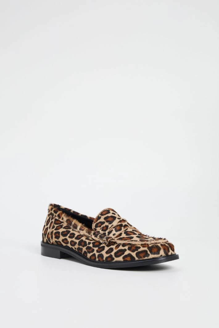 Moccasins in pony skin, with stitching on the upper. Leather lining and rubber sole.