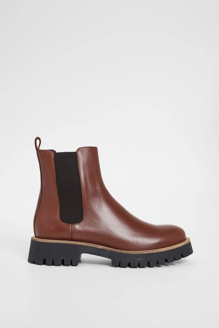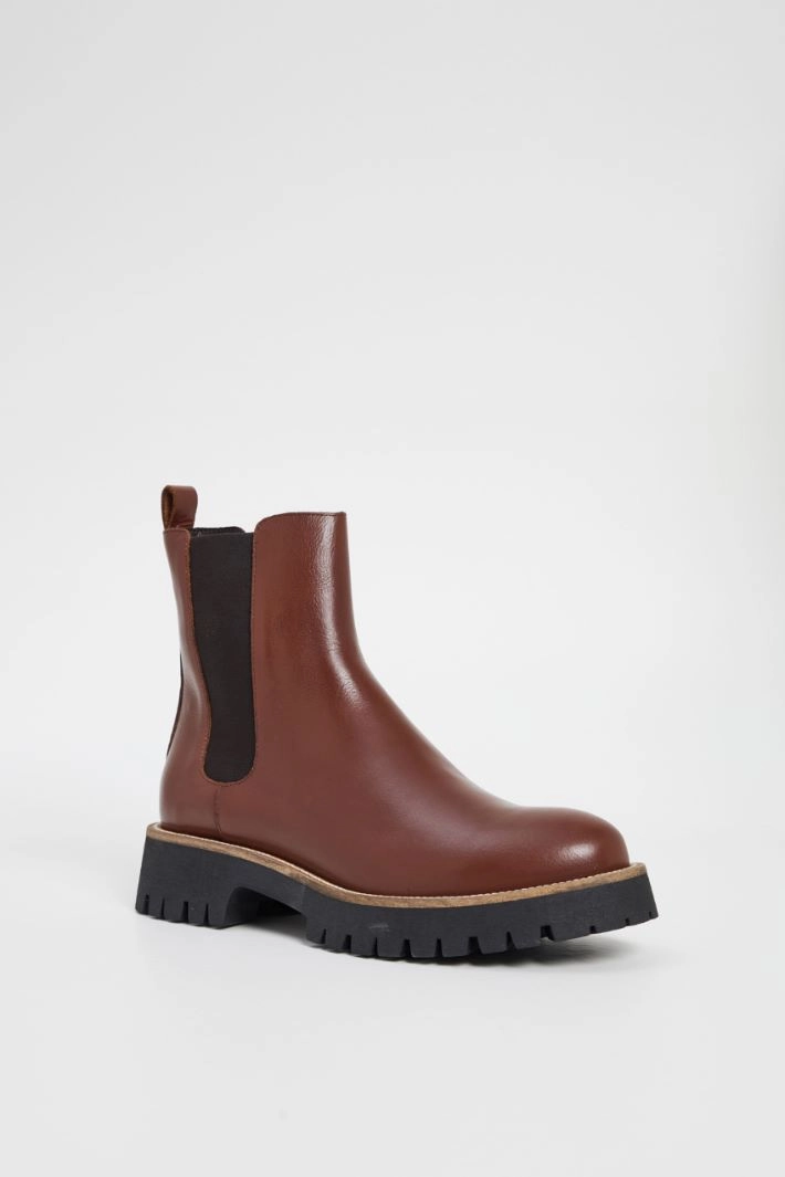 Ankle boots in genuine leather, with rounded toe and elastic inserts on the side. Leather lining, rubber sole.