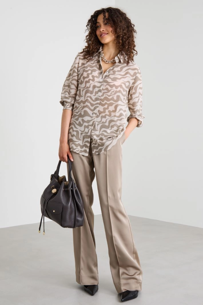 Straight-cut shirt in pure silk crepe de chine, with a wearable flower detail, classic collar, long sleeves with buttoned cuffs. Concealed button fastening.