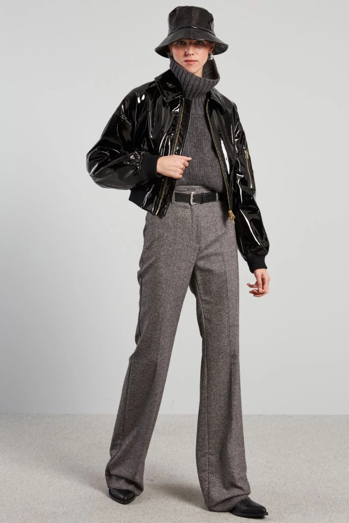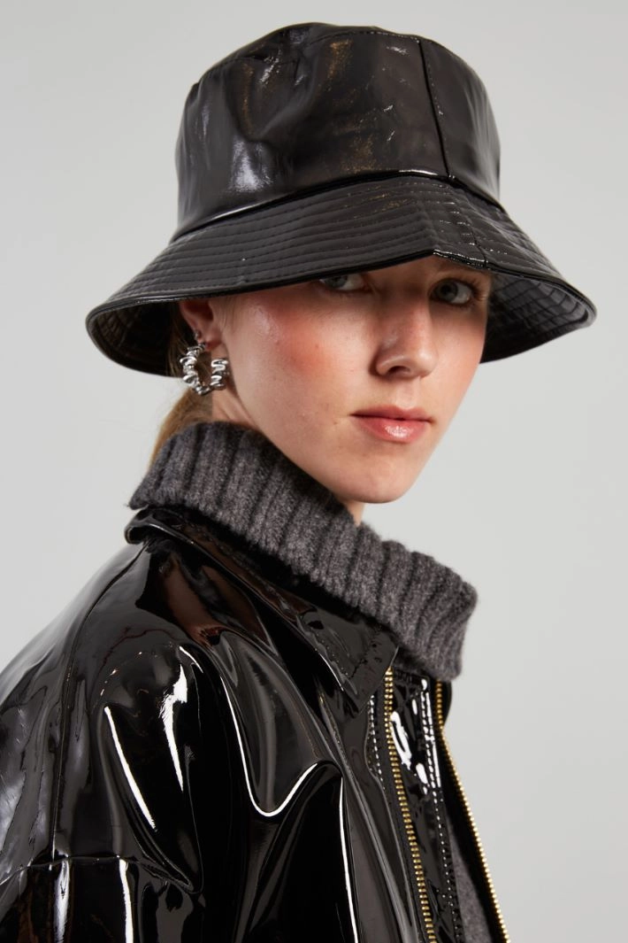 Fisherman's hat in coated technical fabric, with internal drawstring. Lined.