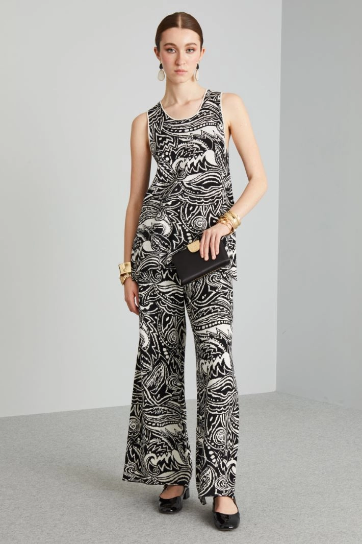 Straight-fit sleeveless top in viscose blend jacquard knit, with U-neck, thick straps and side slits.