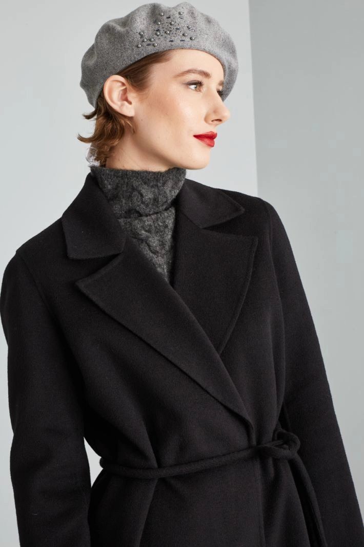 Beret in viscose blend knit with rhinestone and pearl applique motif.