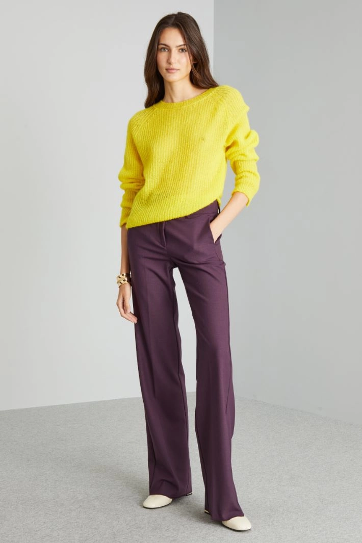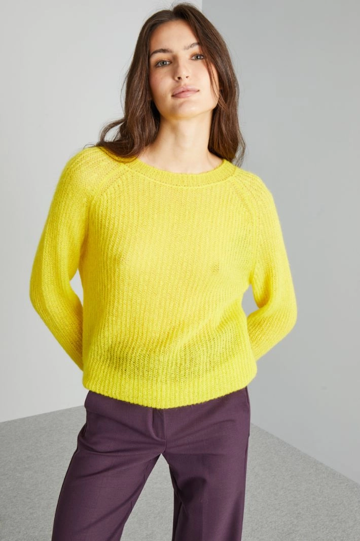 Loose fit sweater in mohair blend yarn, with ribbed knit, crew neck and long raglan sleeves.