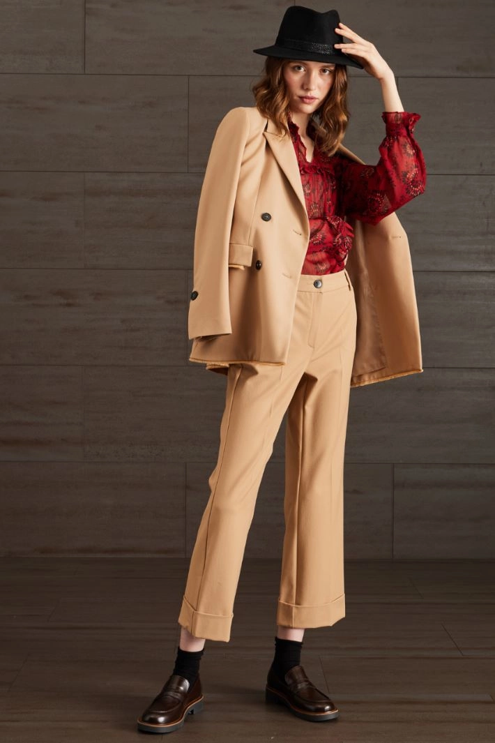 Fedora in pure wool felt, with wide brim and velvet ribbon detail with bow.